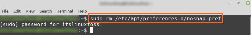 Fire up the terminal and type the below-given command to remove the nosnap.pref file: