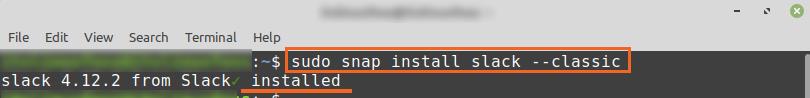Once the Slack is installed from the Snap store, verify the installation with the command: