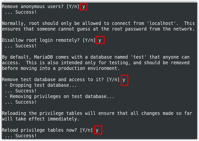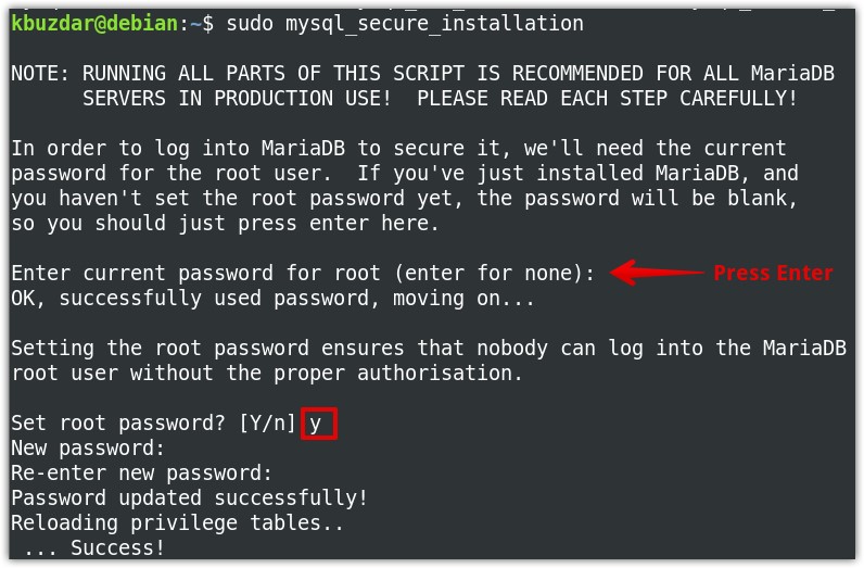 Now execute the below command in Terminal to improve the security of your MariaDB installation: