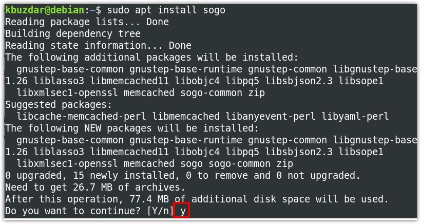 In case you no longer need SOGo Groupwarw, you can easily remove it from your system. Execute the below command in Terminal to uninstall SOGo from your Debian system: