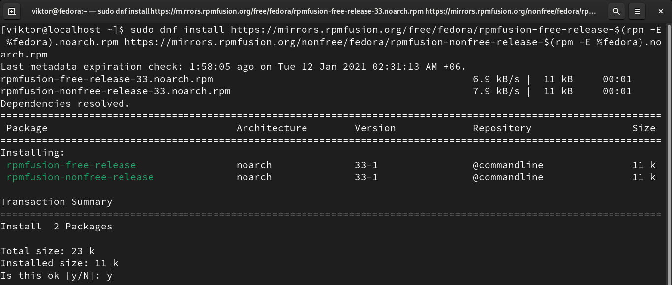 Configuring RPM Fusion is quite simple. Just run this long command.