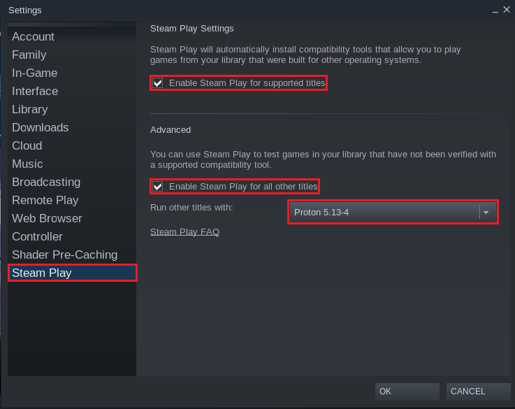Check the options marked in the screenshot. As for the Proton version, ensure that it’s the latest version.