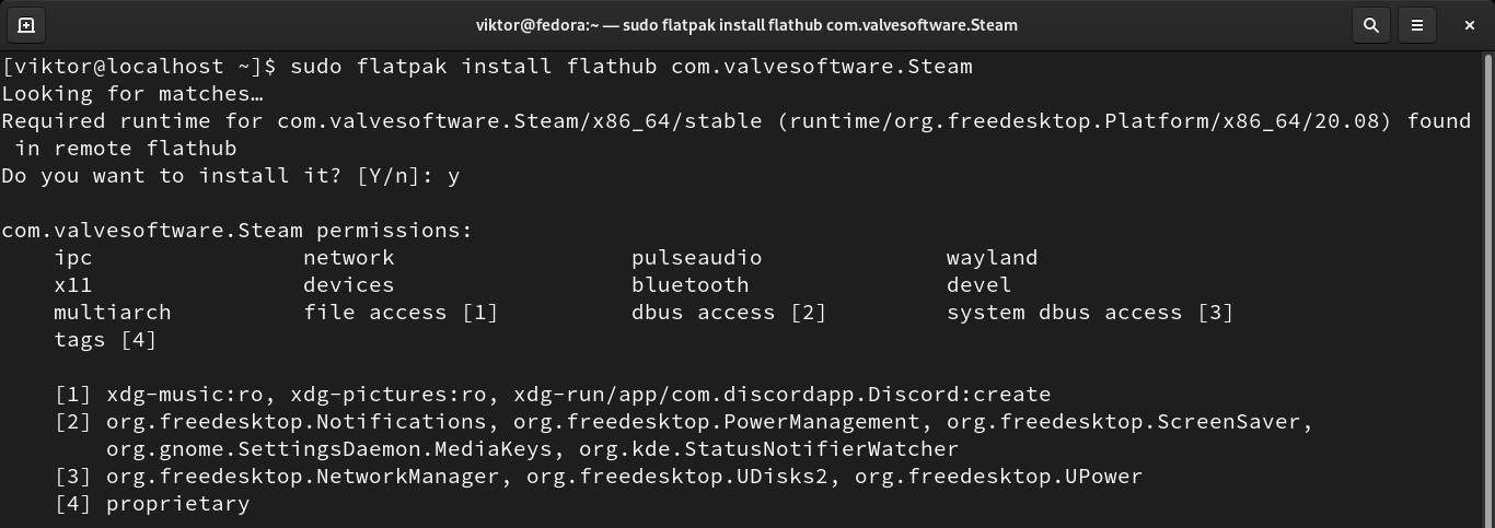 Flatpak is an interesting type of Linux package. Given the support for the platform, a flatpak package can run on any Linux distro. All it requires is having the flatpak package manager installed. Steam is available as a flatpak package. This method is less troublesome than the previous one.