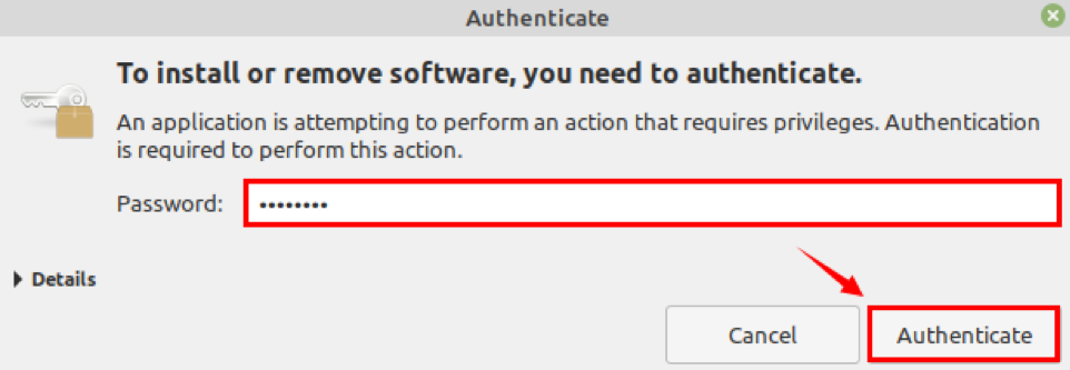 Authentication is required to install Steam on Linux Mint 20, enter the password and click ‘Authenticate’.