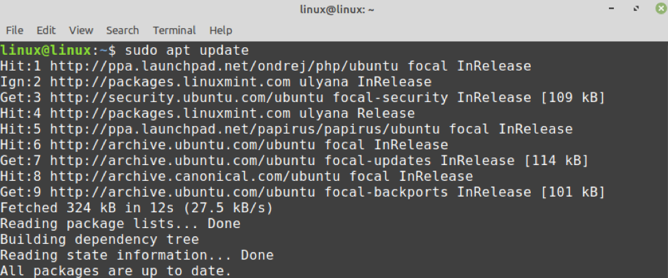 Steam is included in Linux Mint 20 standard repositories. Open the terminal and update the apt listing: