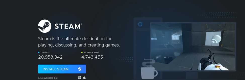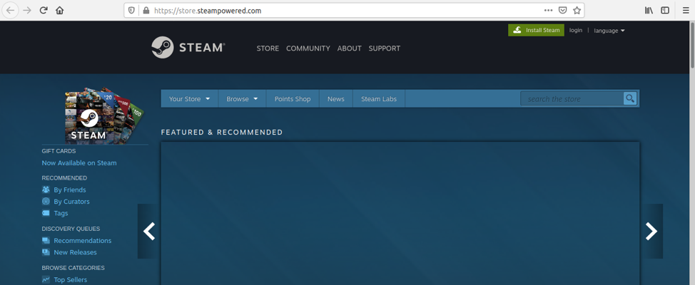 Open the browser and visit the Steam official webpage (https://store.steampowered.com/). Click on ‘Install Steam’.