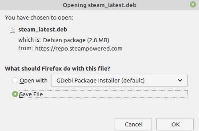 Installing Steam on Linux Mint 20 from the Steam official webpage