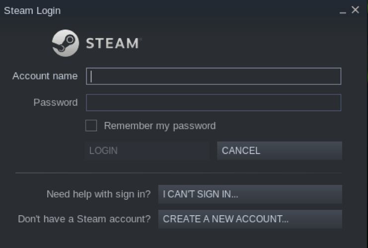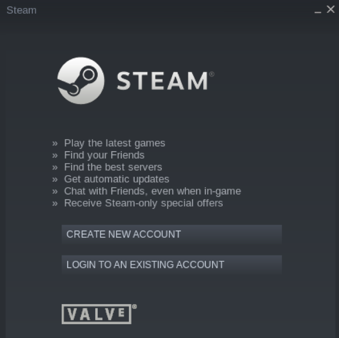 When the additional packages are downloaded and installed successfully, Steam’s dashboard screen will appear. Create a new account or use an existing account to log in.