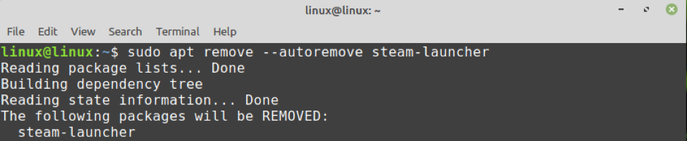 If you no longer require Steam and wish to remove it, type the below-given command to do so: