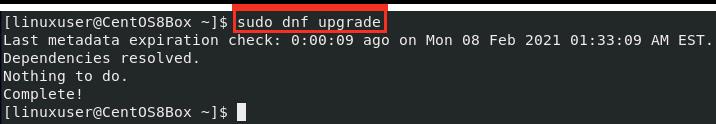 First, ensure that your CetnOS 8 system is up-to-date by issuing the following command: