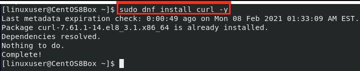 The Curl package is available in the official package repository of CentOS 8, and it can easily be installed.
