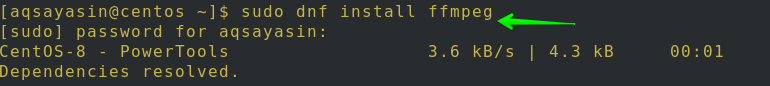 The last part is to activate the power tools in Centos 8 before FFmpeg is installed. For this task, use the following command:
