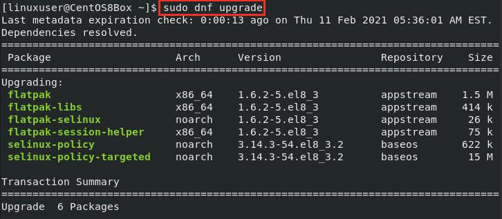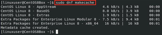 First, update the DNF package repository cache and make sure that the system is up-to-date. To update the DNF repository cache, issue the following command.