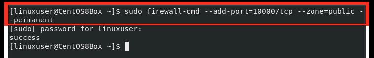 Since Webmin listens on port 10000 by default, we will need to add port 10000 to the firewall. To allow port 10000, enter the following command: