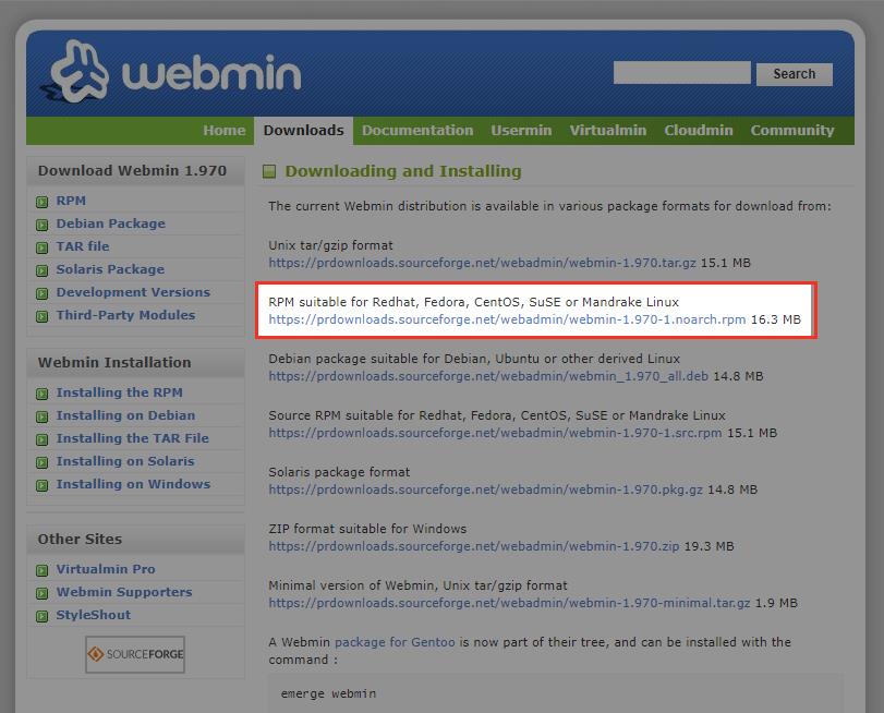 Download the RPM file from the official website of Webmin by visiting the link below: