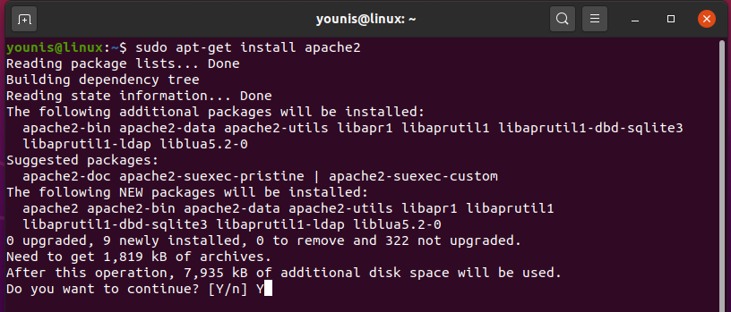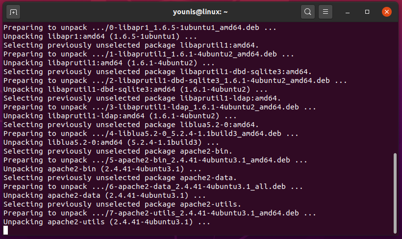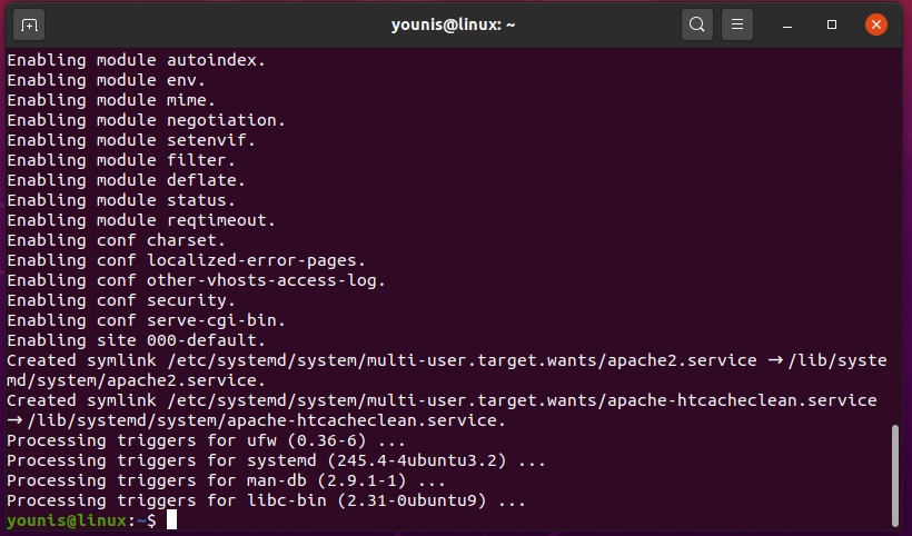 WordPress is usually installed using the LAMP framework. In LAMP, L stands for Linux, A stands for Apache, M stands for MySQL, and P stands for PHP. First, you will install an SSH client on the system. You will be using the SSH username and password to log in. After you obtain access, you will be shown a welcome message. Enter the following two commands to install Apache: