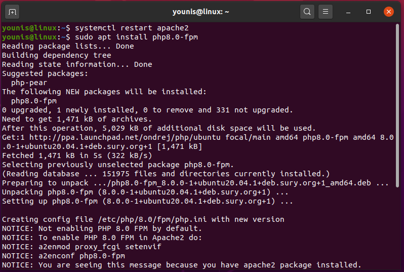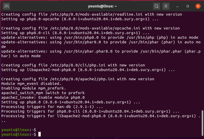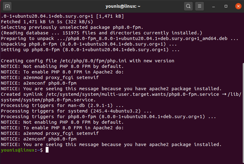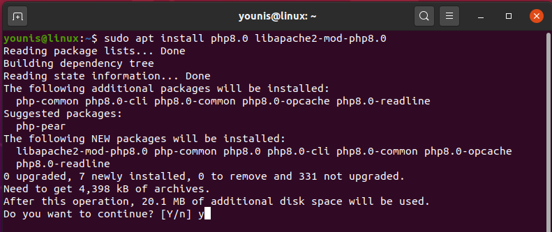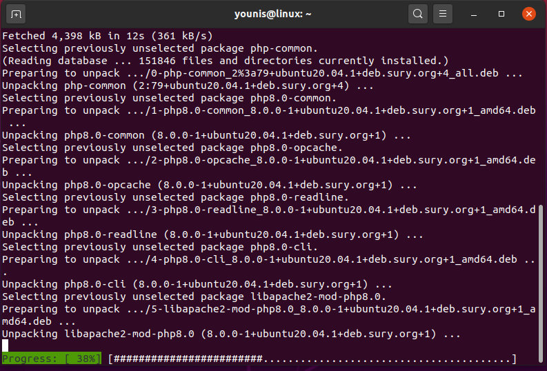 PHP also needs to be downloaded with WordPress. PHP is the language used in WordPress to run and decipher the PHP scripts used in WordPress. This section explains how to install version 8 of PHP in Ubuntu.