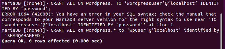 First, open the SSH client and use the commands given below. The first command enters the MySQL interface. The second command creates the database and enables the UTF8 character format, thus enabling the Unicode texts without becoming corrupted. The third command creates a new username, along with its password. Finally, the fourth command saves the changes made, and the fifth command exits the MySQL interface.