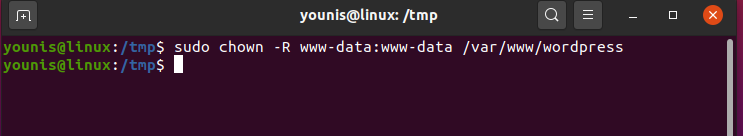 At this point, you have installed the file server for WordPress. Now, you must configure and highlight the owner information. Use the following commands to do so. The first command gives the user an HTML folder for downloading gradients, backgrounds, and plugins directly. The second command sets the flag to the mini folders of the HTML folder.