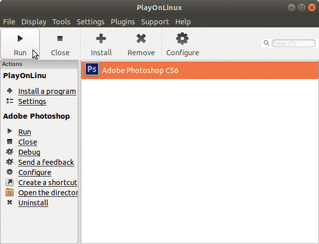To use Photoshop, simply open PlayOnLinux and select Adobe Photoshop CS6. Finally click on Run and you’re good to go.
