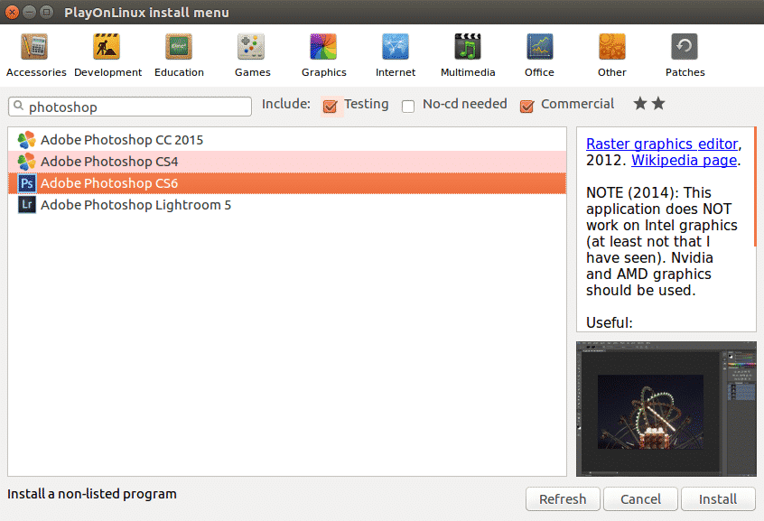 Step 4: Installing Photoshop using PlayOnLinux