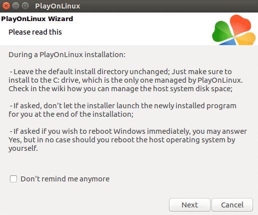Press Install and now a prompt showing a PlayOnLinux wizard will appear.