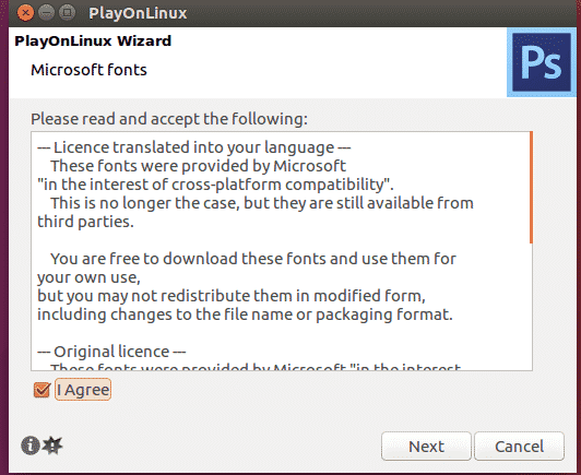 A prompt asking to install Microsoft fonts will also appear. Simply click on the I agree checkbox and continue Next.
