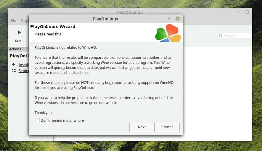 The PlayOnLinux installation wizard will pop up. Click “Next”.