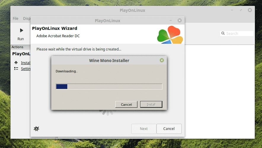 At this point, PlayOnLinux will download and install Wine. Be patient while the download completes.