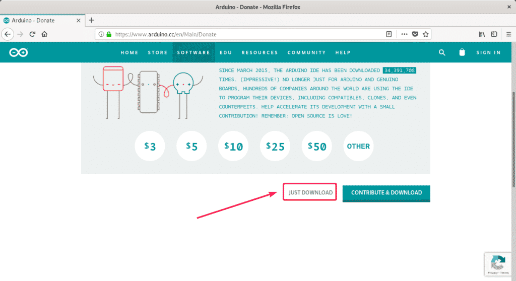 If you want, you can donate to the Arduino project. If you don’t want to donate, just click on JUST DOWNLOAD button as marked in the screenshot below.