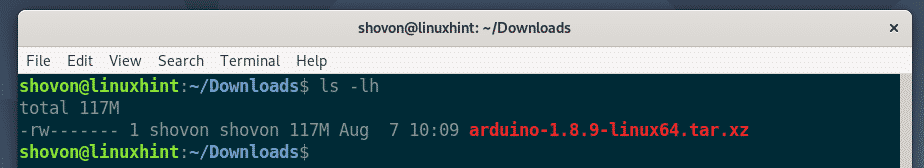 You should be able to find the Arduino IDE archive that you’ve just downloaded as you can see in the screenshot below. Remember the archive name.