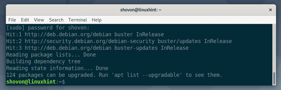 First, update the APT package repository cache with the following command: