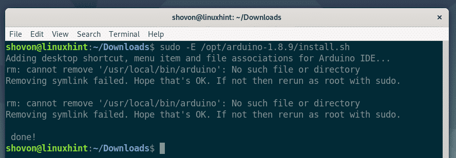Now, run the following command to create a desktop launcher for Arduino IDE and add a symbolic link of the Arduino executable to the PATH.