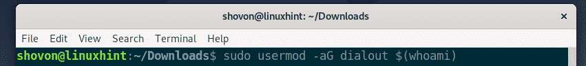 To add the Debian 10 login user to the dialout group, run the following command: