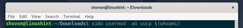 To add the Debian 10 login user to the uucp group, run the following command: