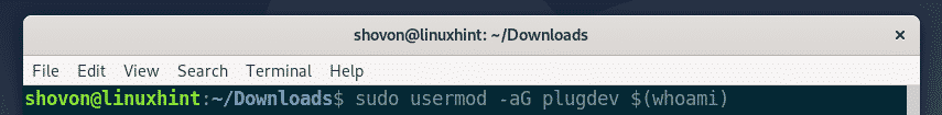To add the Debian 10 login user to the plugdev group, run the following command: