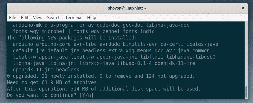 Now, press Y and then press <Enter> to continue.
