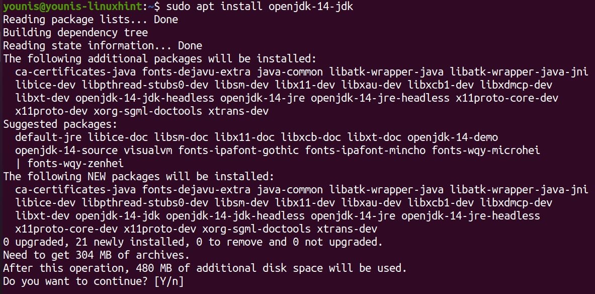 OpenJDK 14 should launch automatically upon install. To verify the install, type: