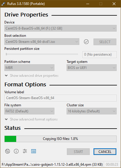 Making a Bootable USB Thumb Drive of CentOS 8 Stream:
