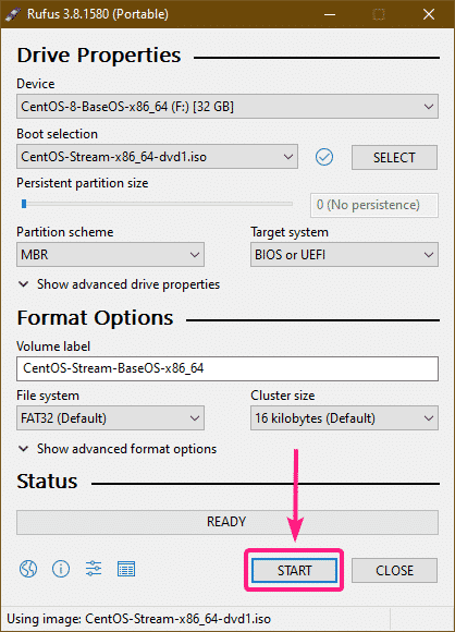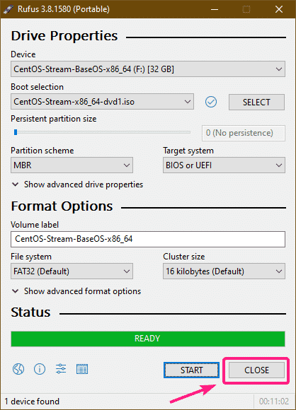 You can use Rufus, Etcher, and many other tools to create a bootable USB thumb drive of CentOS 8 Stream. In this article, I am going to use Rufus.