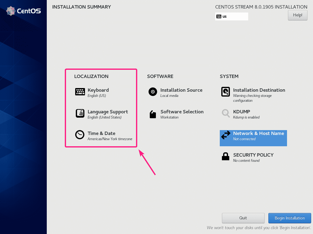Now, you have to select the installation destination. So, click on Installation Destination.