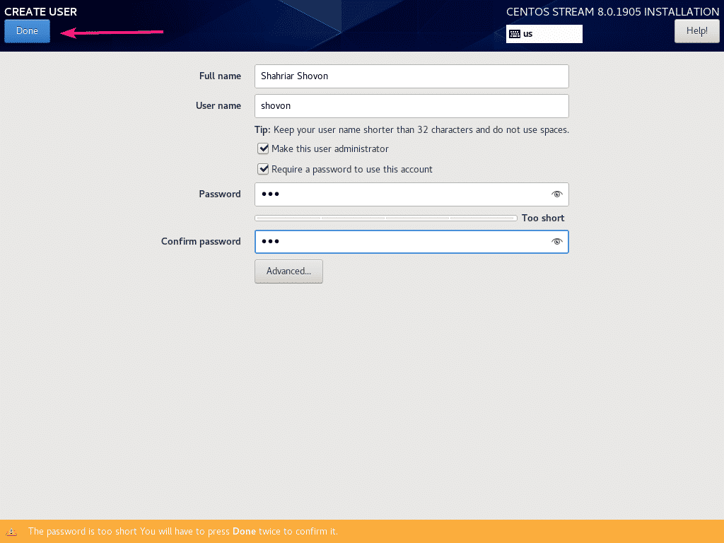 Type in your personal details. Make sure to check make this user administrator. Once you’re done, click on Done.