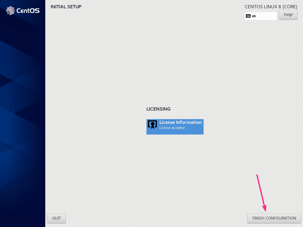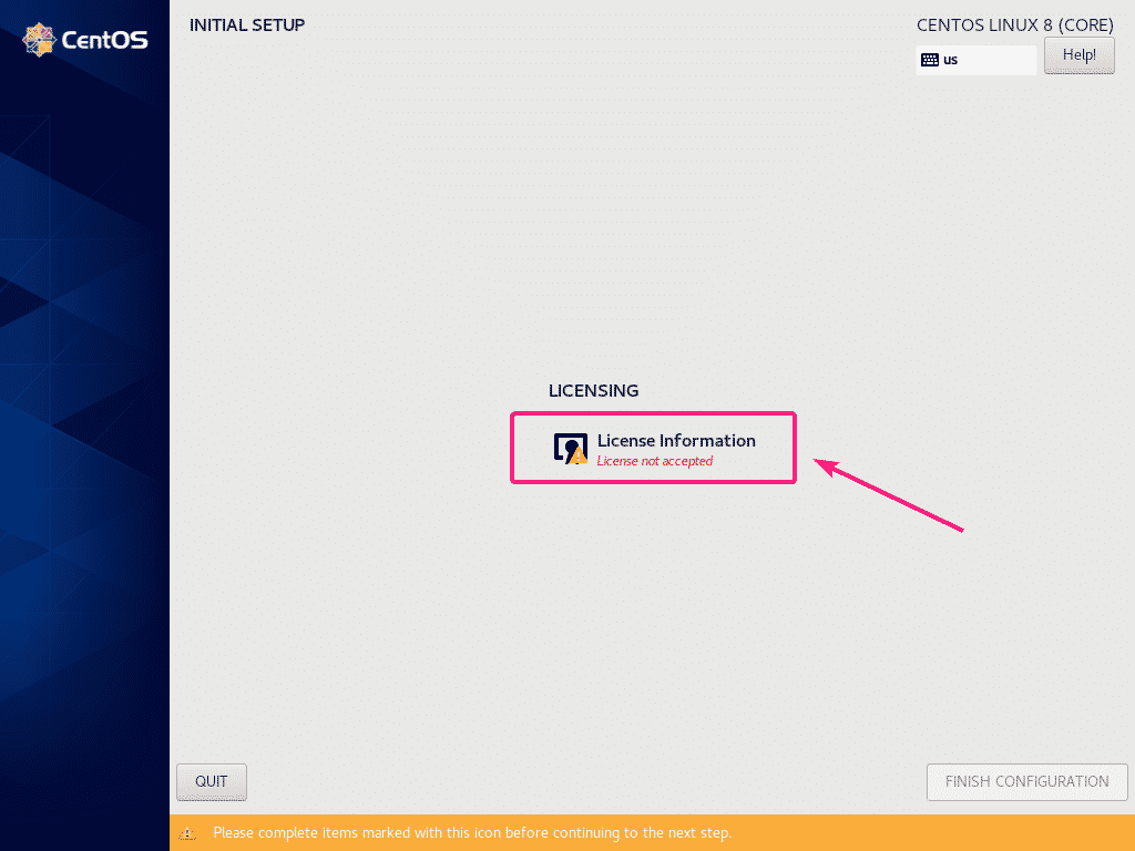 Once CentOS 8 Stream boots, you will be asked to accept the license. Click on License Information.