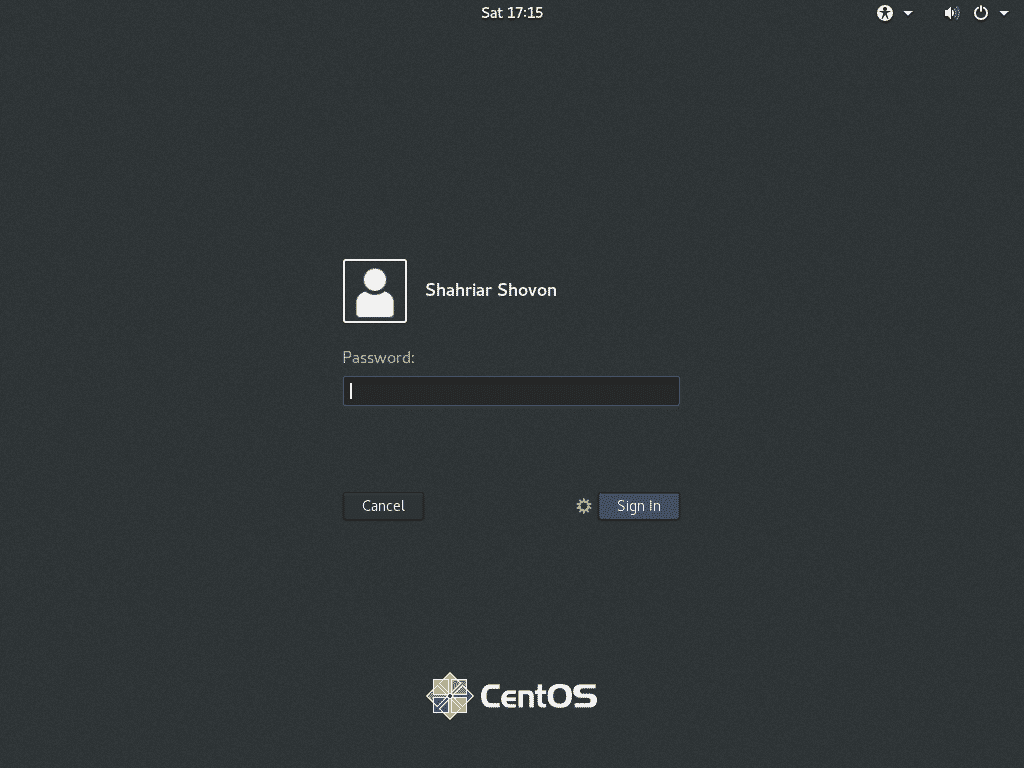 You should see the CentOS 8 Stream login window. Now, select your login user from here.