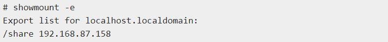 Fire up the terminal on the server and type the command below to see the contents up for sharing on the client machine:
