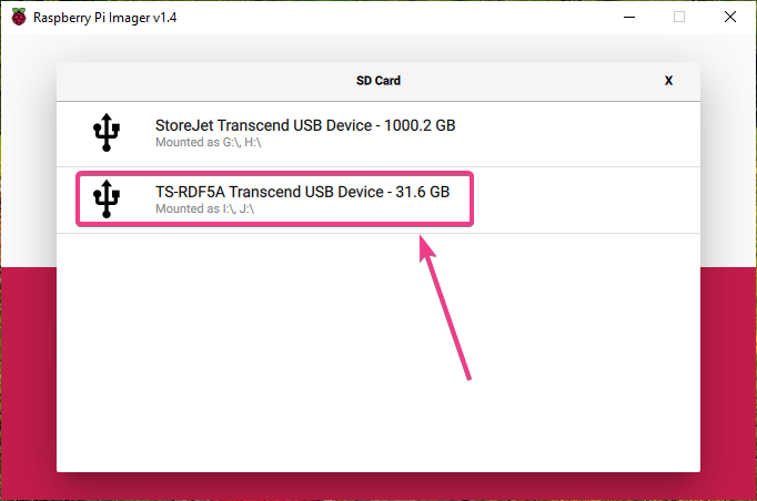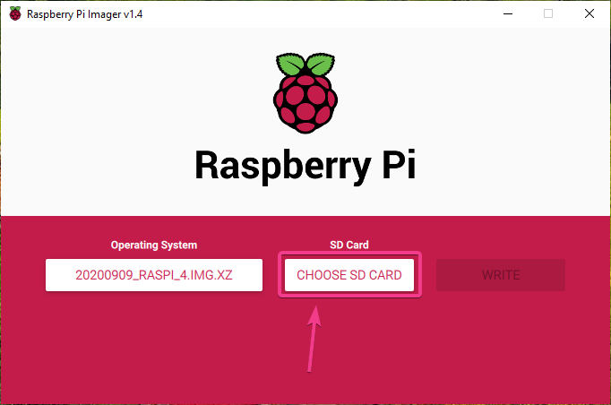 To select your microSD card, click on CHOOSE SD CARD as marked in the screenshot below.