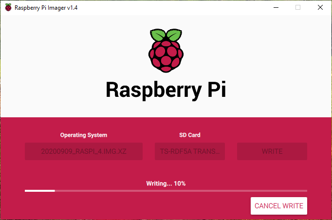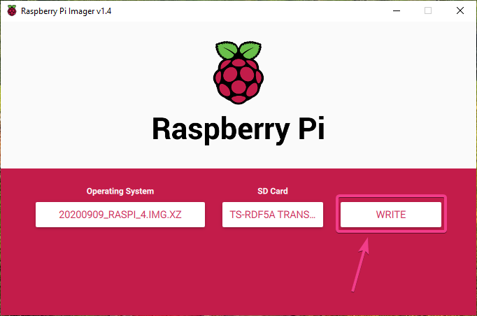 To flash the Debian image to the selected microSD card, click on WRITE.