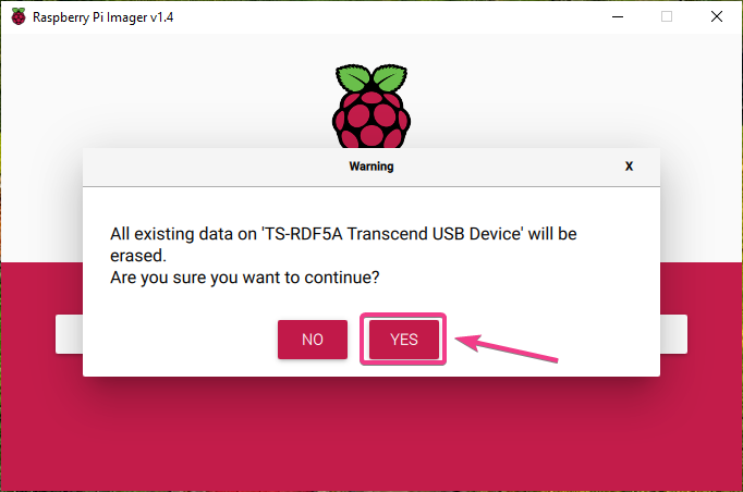 Before the microSD card can be flashed with a new operating system image, it must be erased. If you don’t have any important data on your microSD card, click on YES.