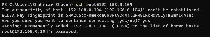 Now, you should be able to SSH into your Raspberry Pi as the root user using the password of the root user.