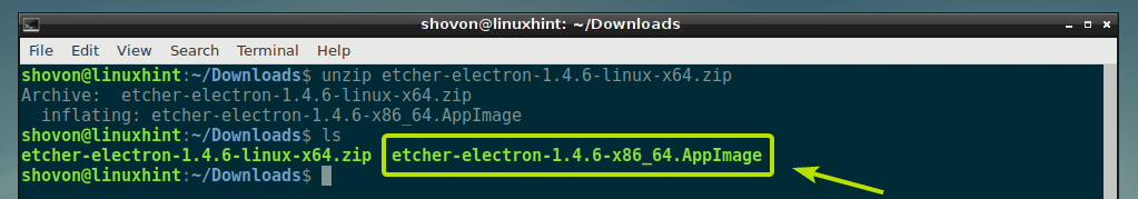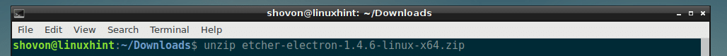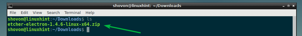 Now, navigate to the ~/Downloads directory where you downloaded Etcher with the following command: